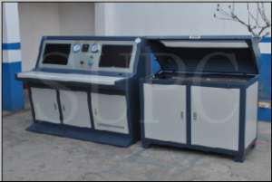 纖維管壓潰試驗機-高壓壓潰測試裝置配有高壓密封裝置,實現對纏繞管件的外水壓,高壓壓饋的測試項目。壓力范圍0~60Mpa,介質為液體,清水,控制精度為0.5Mpa,顯示精度為0.01Mpa,可采用計算機的控制方式,系統內置高壓泵,驅動壓力為0.3~0.8mpa,配有專用的工裝夾具,可用于高壓壓饋測試,實現對管件的快速密封裝置,計算機分為控制系統和采集系統,控制系統為伺服控制,自由輸出壓力曲線,設定壓力可實現自動停機,到壓力停機,保壓計時的功能;是用于纖維管,玻璃鋼管,纖維增強管的耐水壓檢測,水壓強度測試,水壓失效性測試的檢測項目,配有計算機數據處理系統,可直接輸出壓力曲線和測試報告。