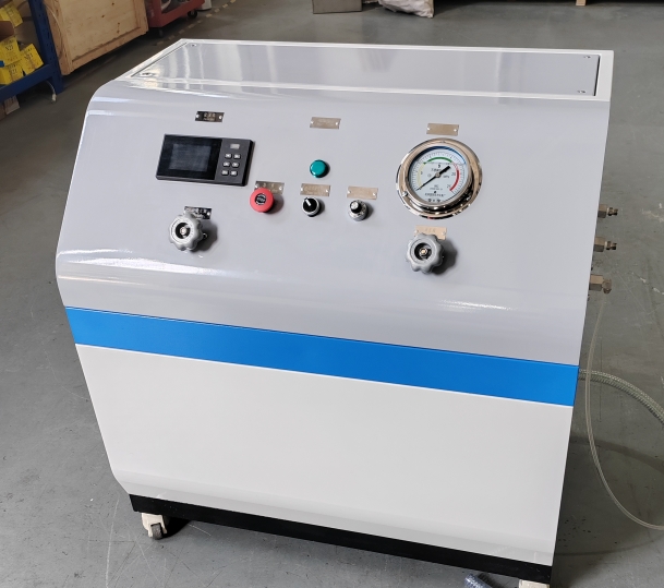 氣瓶內水壓試驗機(鋼瓶內測法水壓試驗機)壓力范圍0~45mpa,介質為靜止的清水,系統(tǒng)內置高壓泵,實現(xiàn)對壓力高的高壓打壓,高壓保壓,高壓泄壓的測試效果,具體的測試步驟為:注水→打壓→保壓→泄壓→輸出數(shù)據(jù)的過程。”是用于針對鋼瓶,氣瓶,非標纏繞瓶,軍工纏繞瓶的內水壓測試的范式,壓力范圍:0.1~45Mpa,介質為靜置的液體,采用思明特增壓泵完成對壓力的增壓,計算機壓力控制系統(tǒng)控制壓力和控制增壓速率。