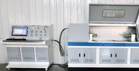 氣瓶內水壓試驗機(鋼瓶內測法水壓試驗機)壓力范圍0~45mpa,介質為靜止的清水,系統內置高壓泵,實現對壓力高的高壓打壓,高壓保壓,高壓泄壓的測試效果,具體的測試步驟為:注水→打壓→保壓→泄壓→輸出數據的過程。”是用于針對鋼瓶,氣瓶,非標纏繞瓶,軍工纏繞瓶的內水壓測試的范式,壓力范圍:0.1~45Mpa,介質為靜置的液體,采用思明特增壓泵完成對壓力的增壓,計算機壓力控制系統控制壓力和控制增壓速率。